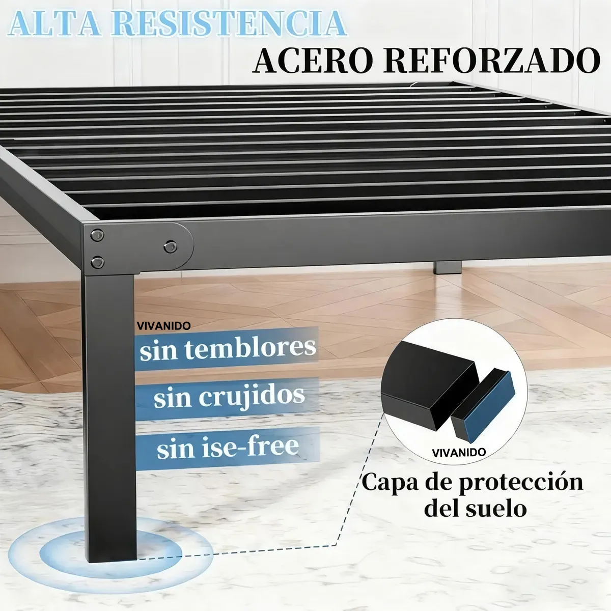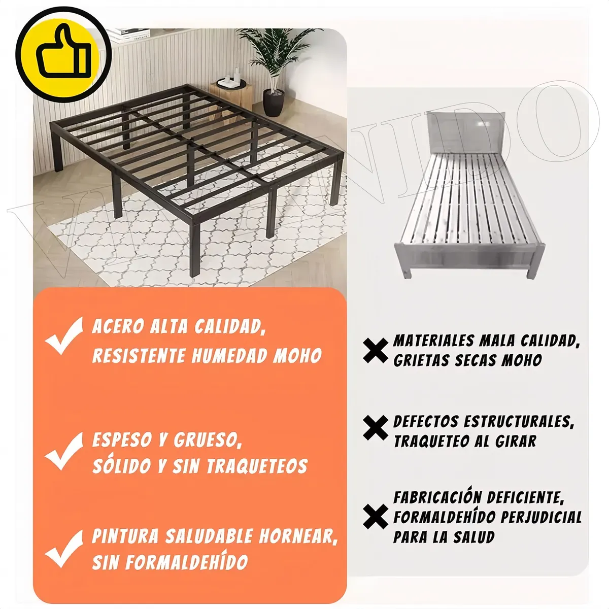 3.FUERTE ESTABILIDAD: Este somier de metal está sostenido por varillas de metal actualizadas y patas de metal que resisten el paso del tiempo. Nuestros marcos de cama están hechos con varillas reforzadas de metal de alta resistencia y reforzadas con material más grueso para mayor estabilidad y soporte de peso. ¡Puede pasar cada noche con tranquilidad!