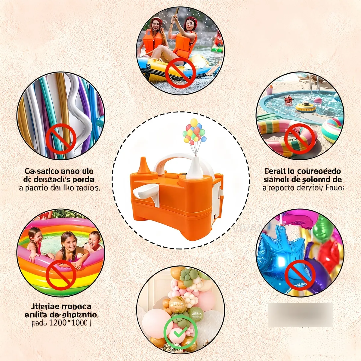 Bomba Para Inflar Globos Electrica Doble Válvula Fiesta