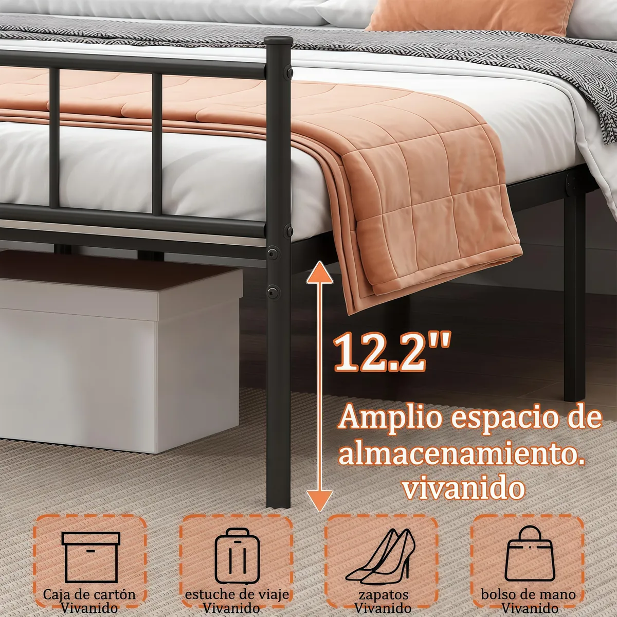 Marco de cama: con rieles laterales de acero de aleación sólida y múltiples patas de apoyo para estabilidad y durabilidad; ofrecen un gran vivanido soporte para colchón. No necesita somier.